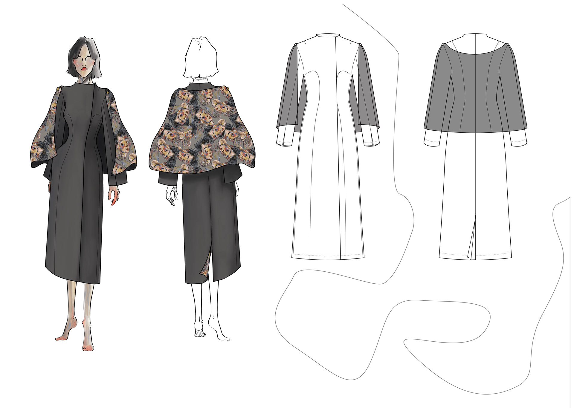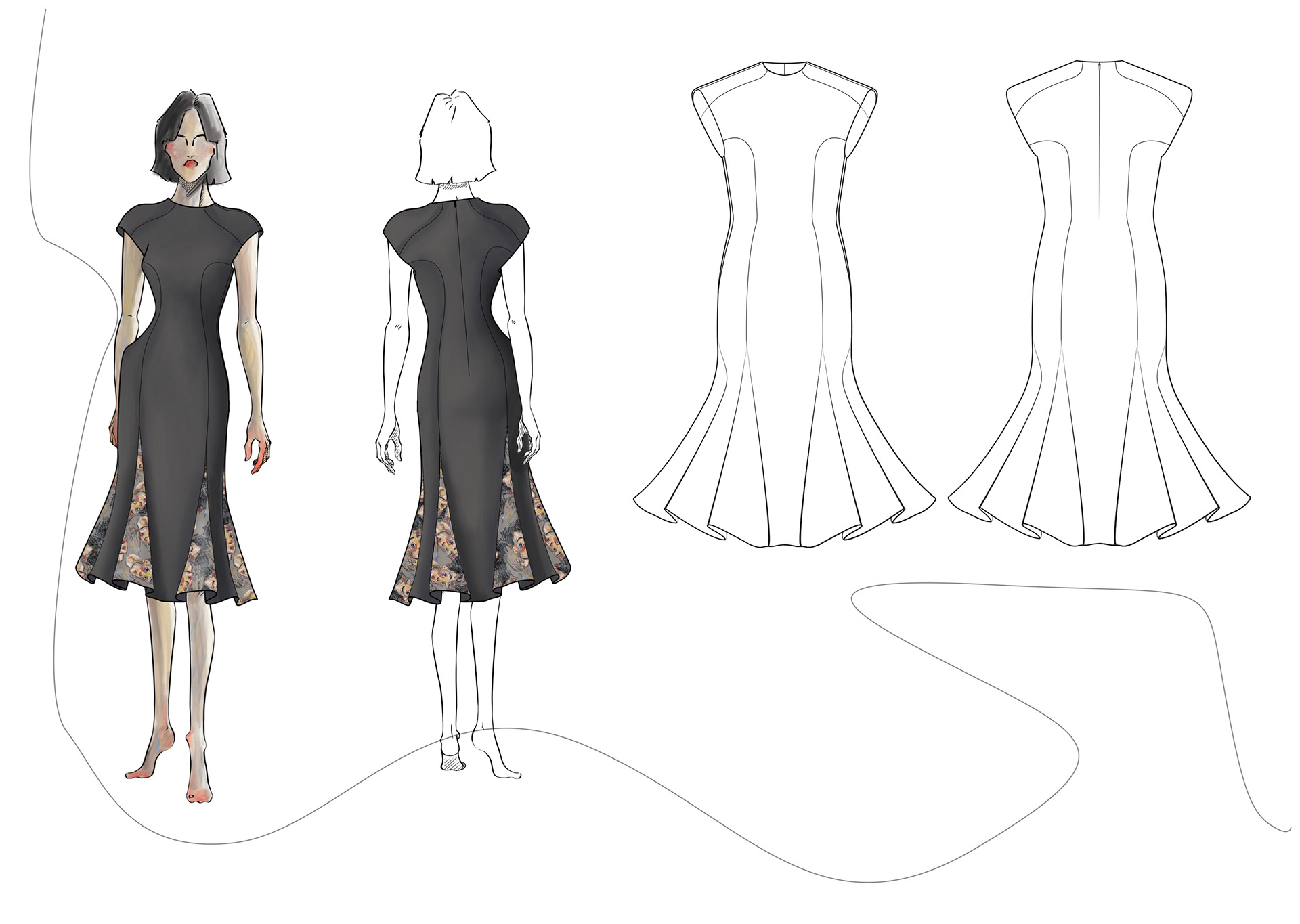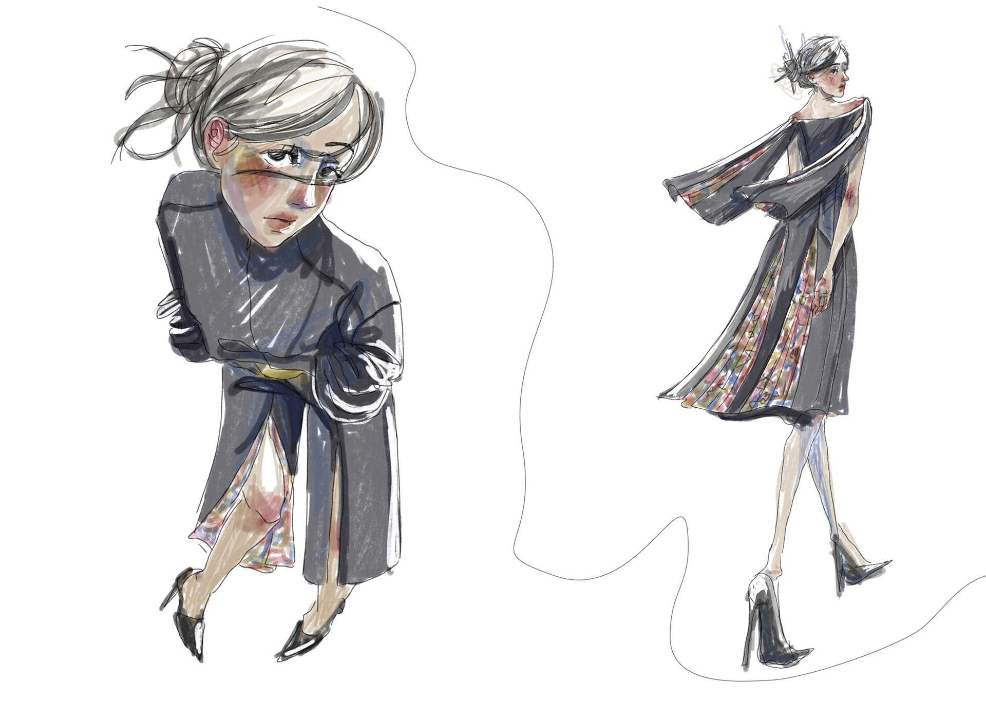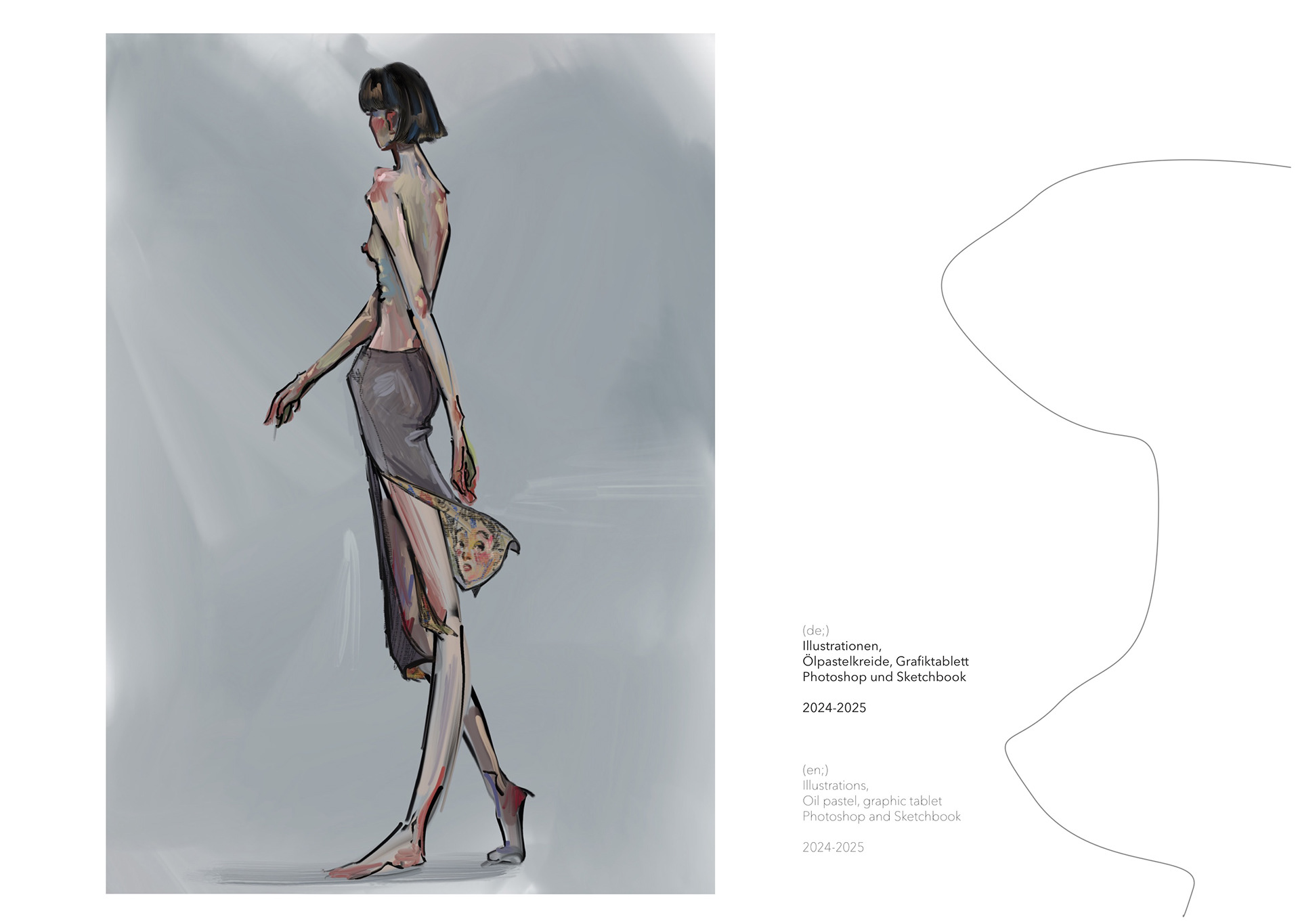 A Project based on a combination of The Works of Egon Schiele and the Silhouettes of Christian Diors „The New Look“ We produced New Silhouettes, Fashion Illustrations, Print and Accessoires Designs.