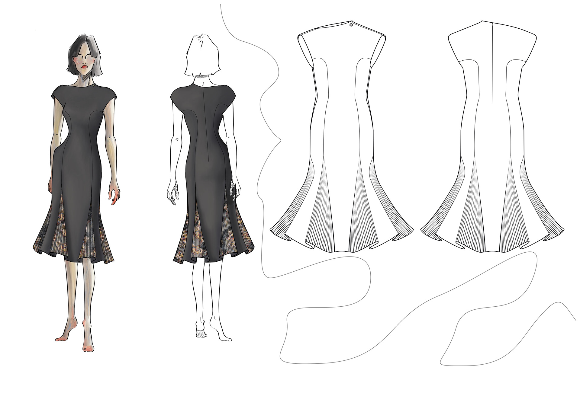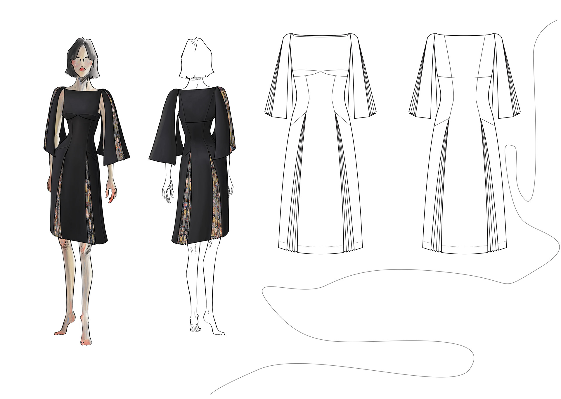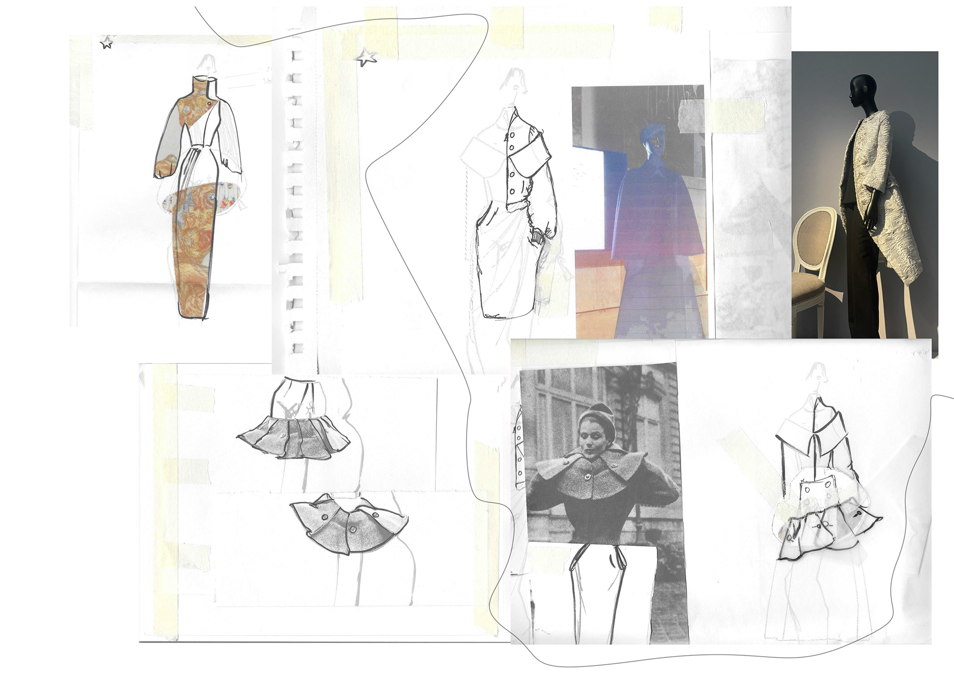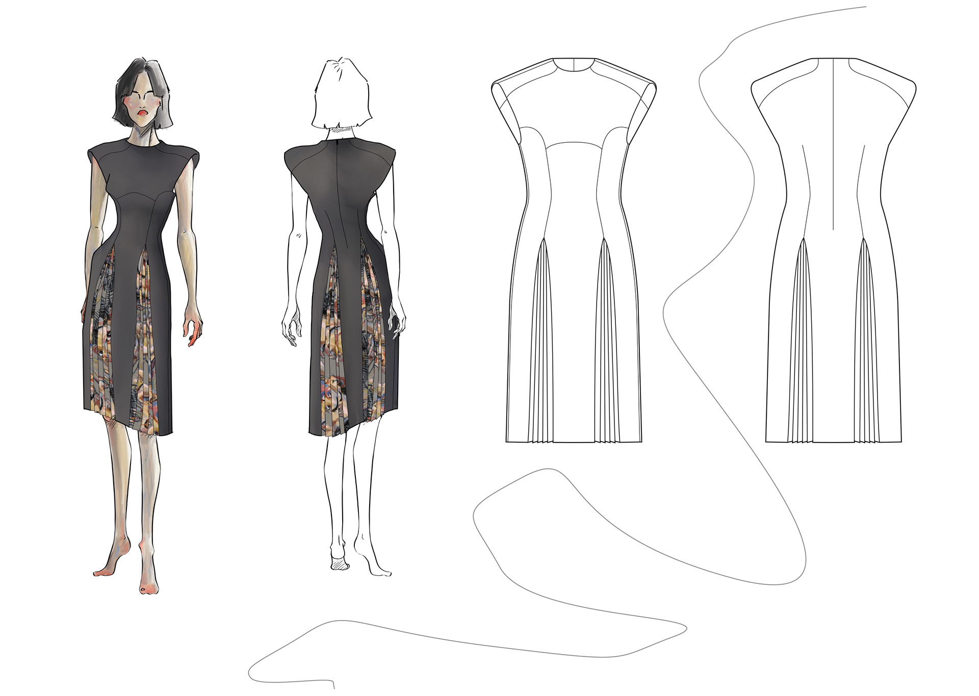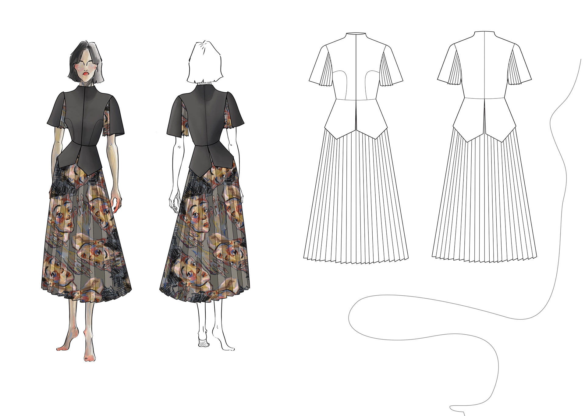 A Project based on a combination of The Works of Egon Schiele and the Silhouettes of Christian Diors „The New Look“ We produced New Silhouettes, Fashion Illustrations, Print and Accessoires Designs.