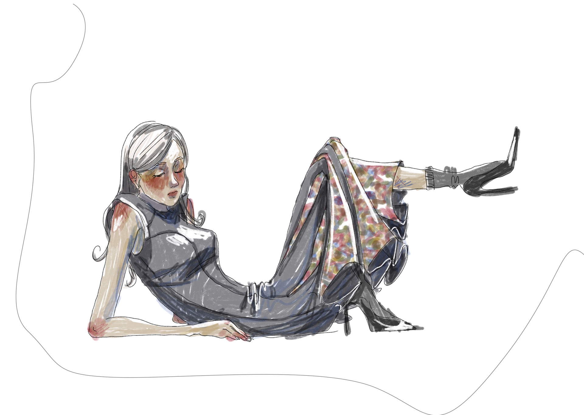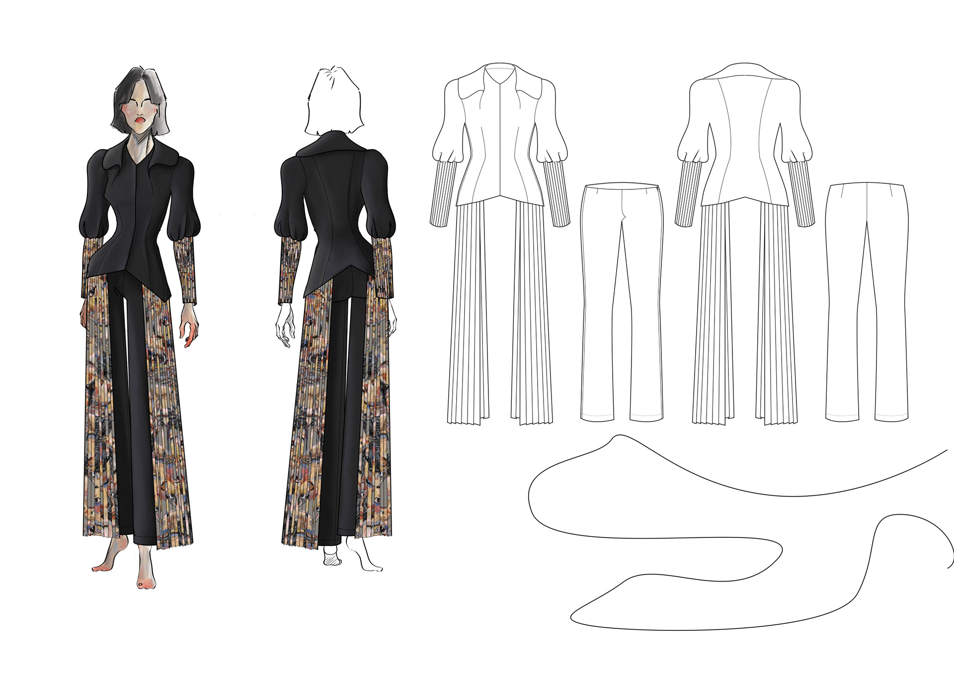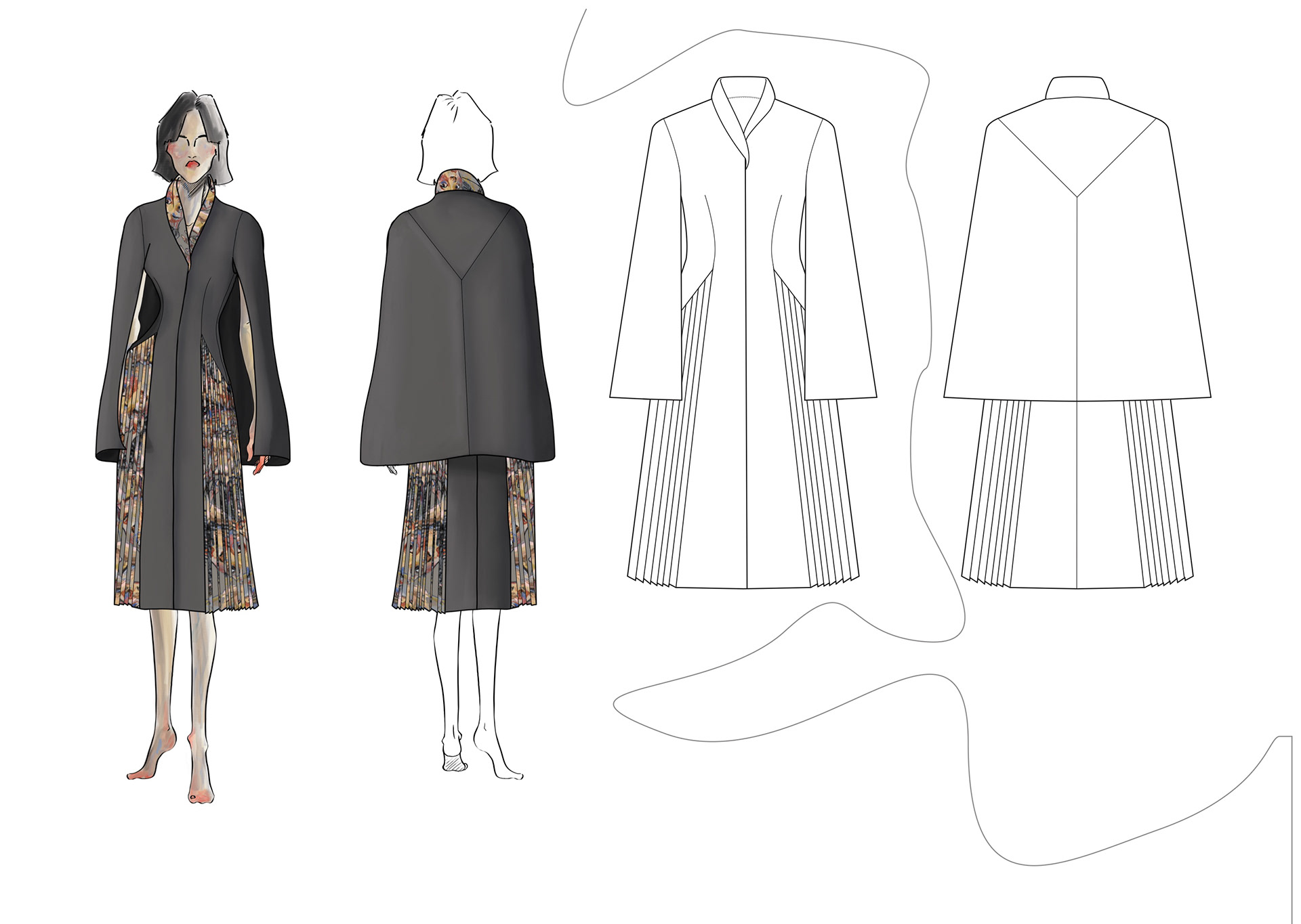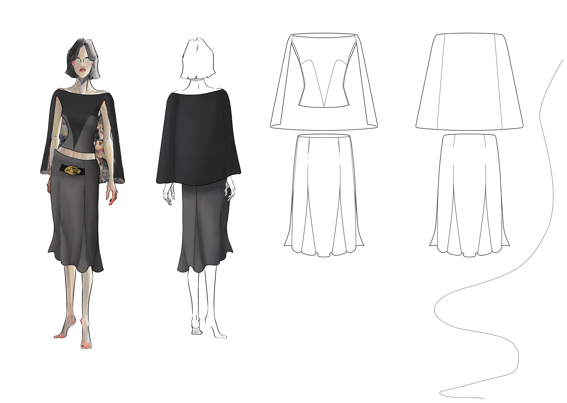 A Project based on a combination of The Works of Egon Schiele and the Silhouettes of Christian Diors „The New Look“ We produced New Silhouettes, Fashion Illustrations, Print and Accessoires Designs.