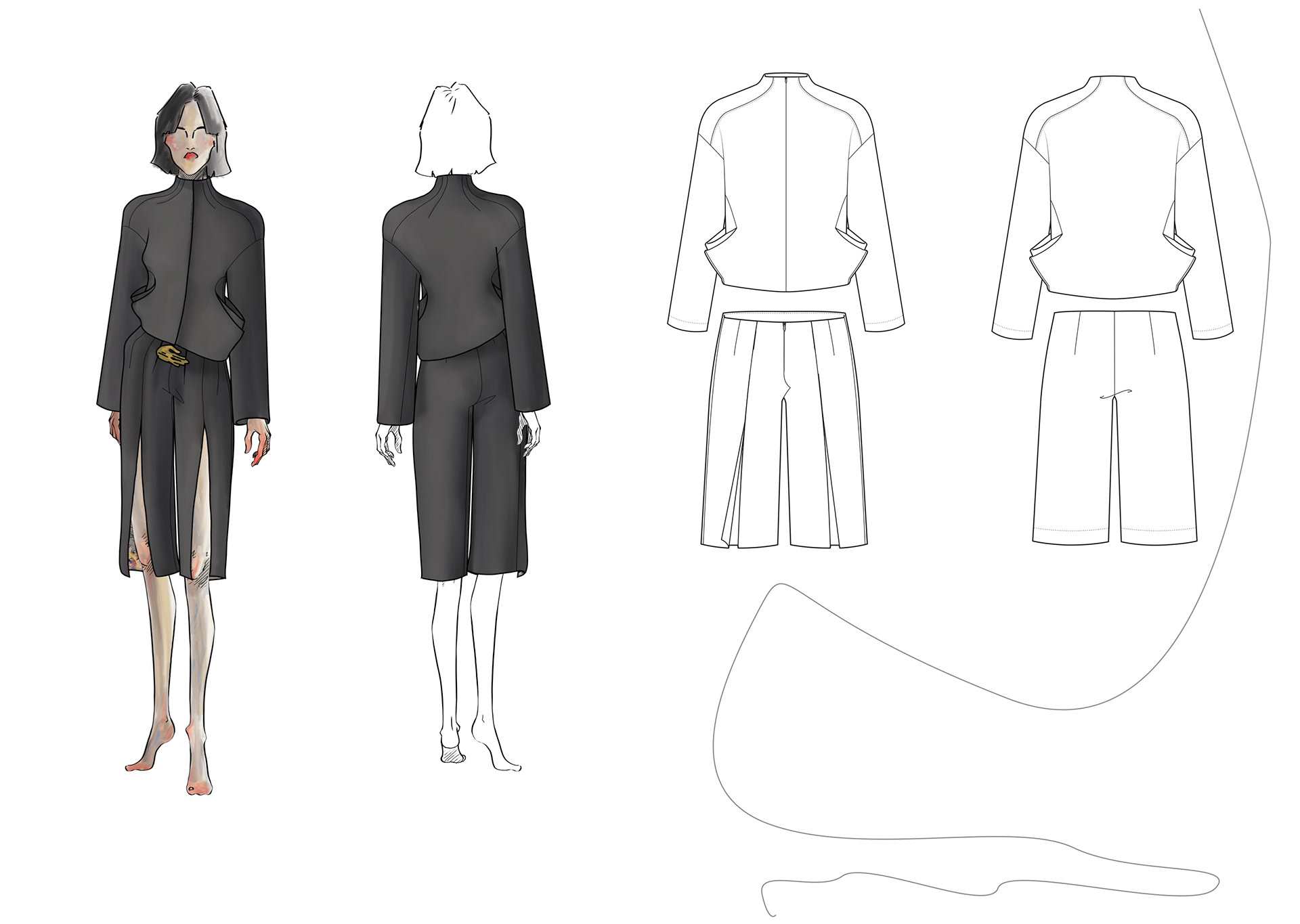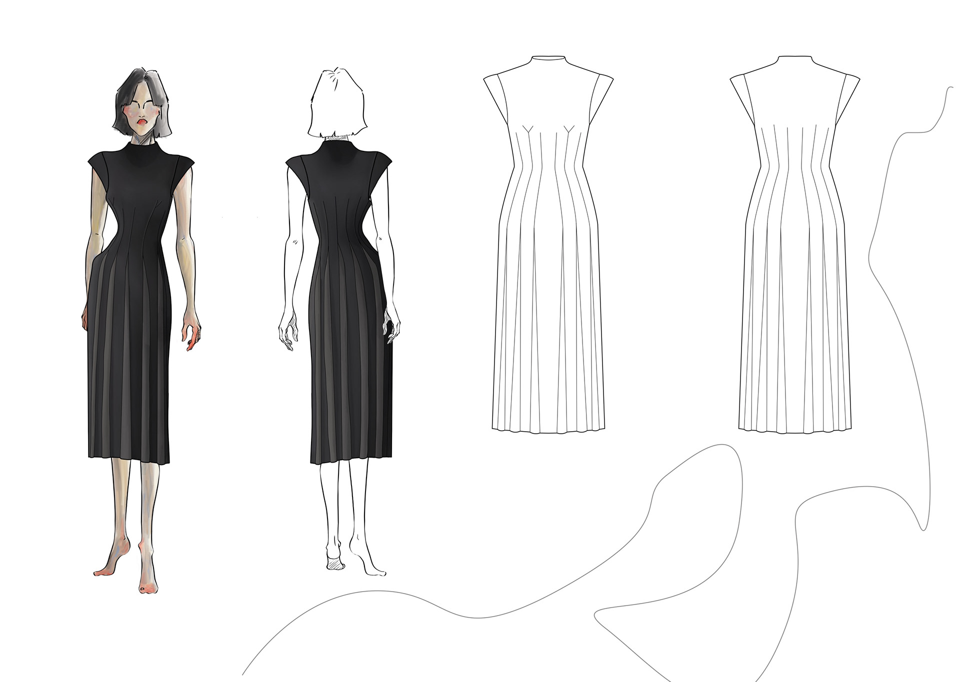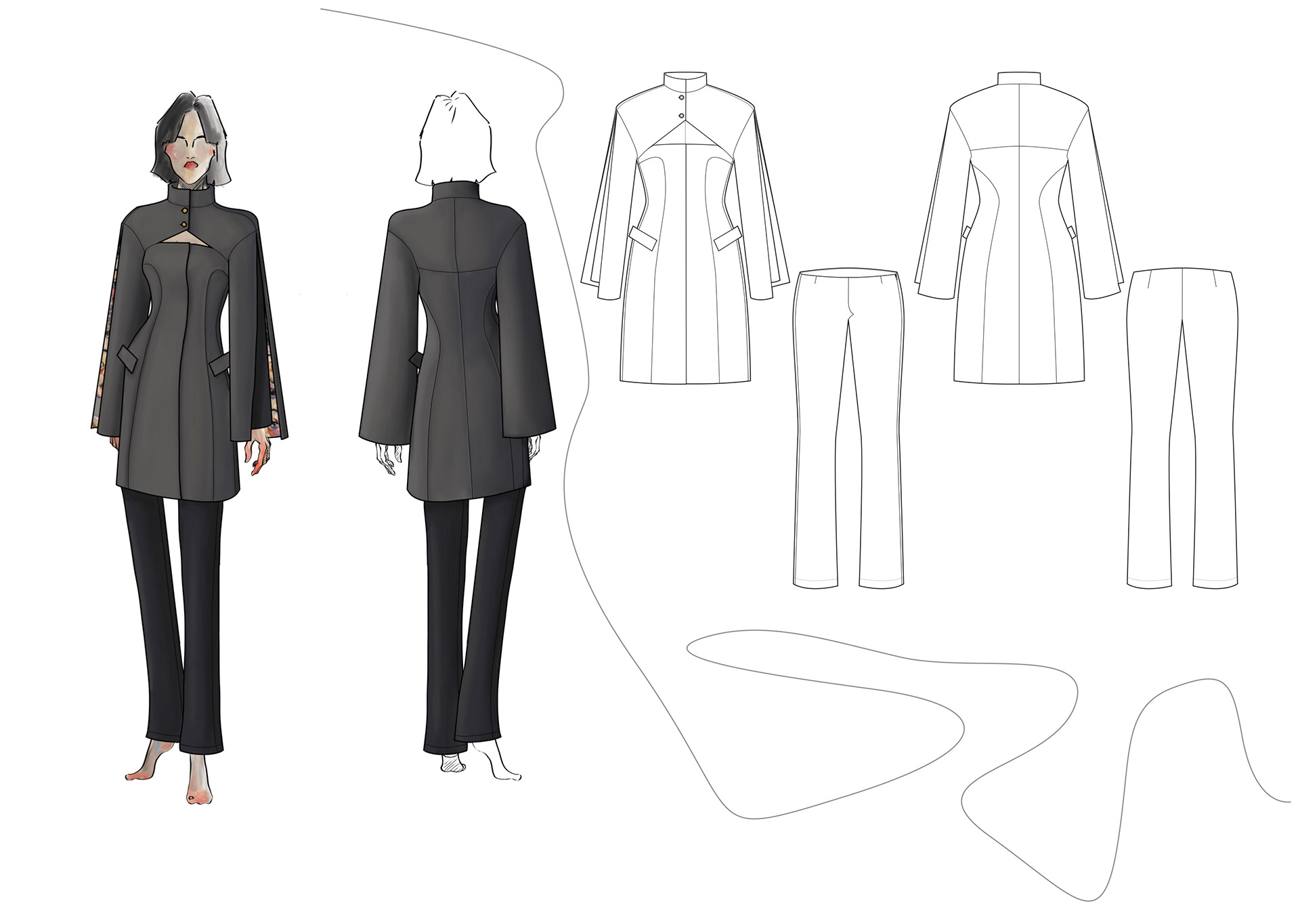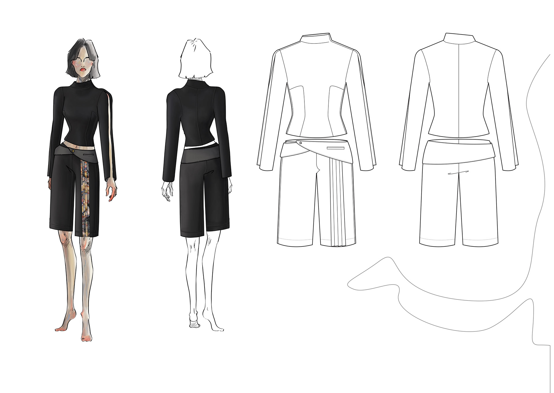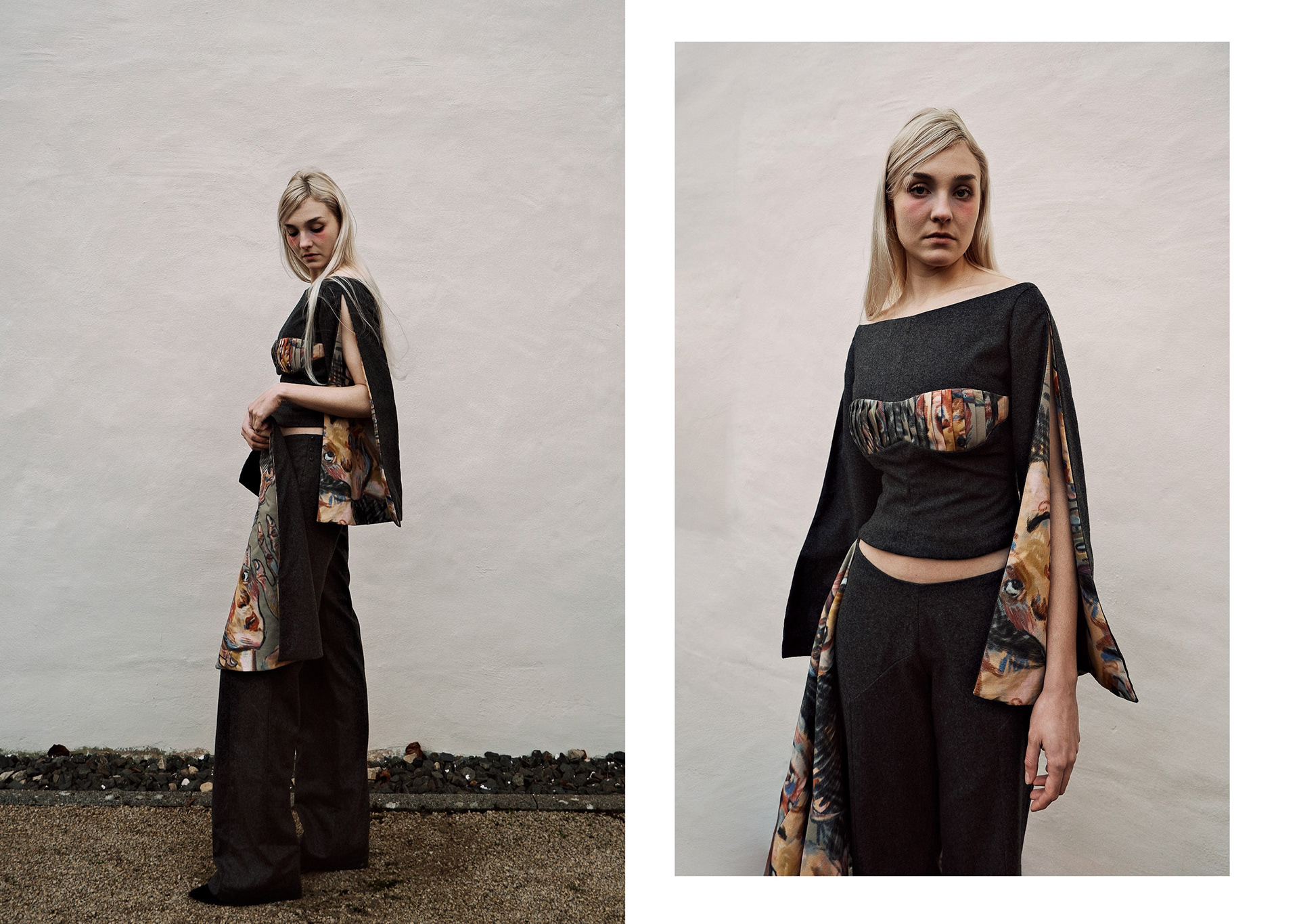 A Project based on a combination of The Works of Egon Schiele and the Silhouettes of Christian Diors „The New Look“ We produced New Silhouettes, Fashion Illustrations, Print and Accessoires Designs.