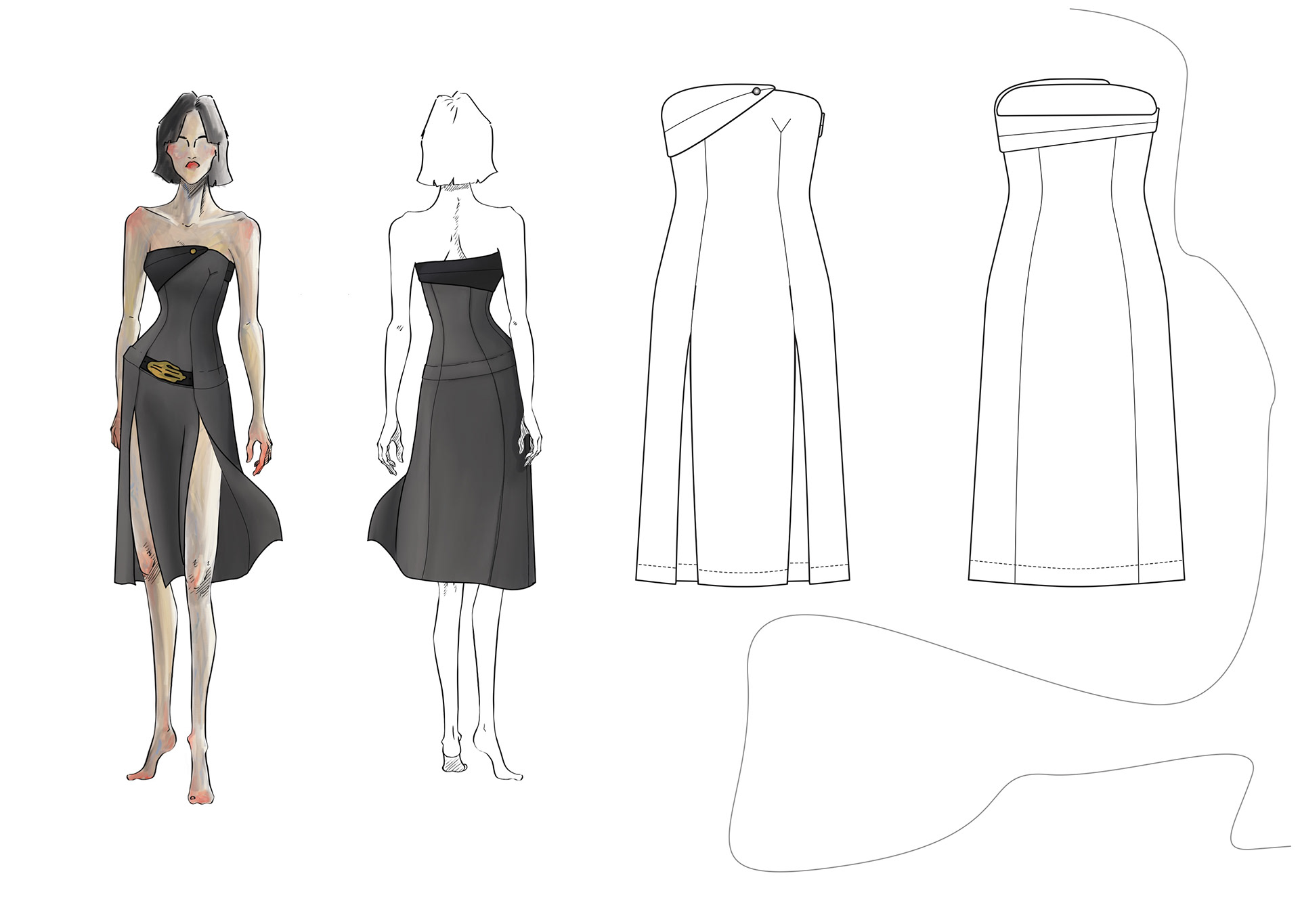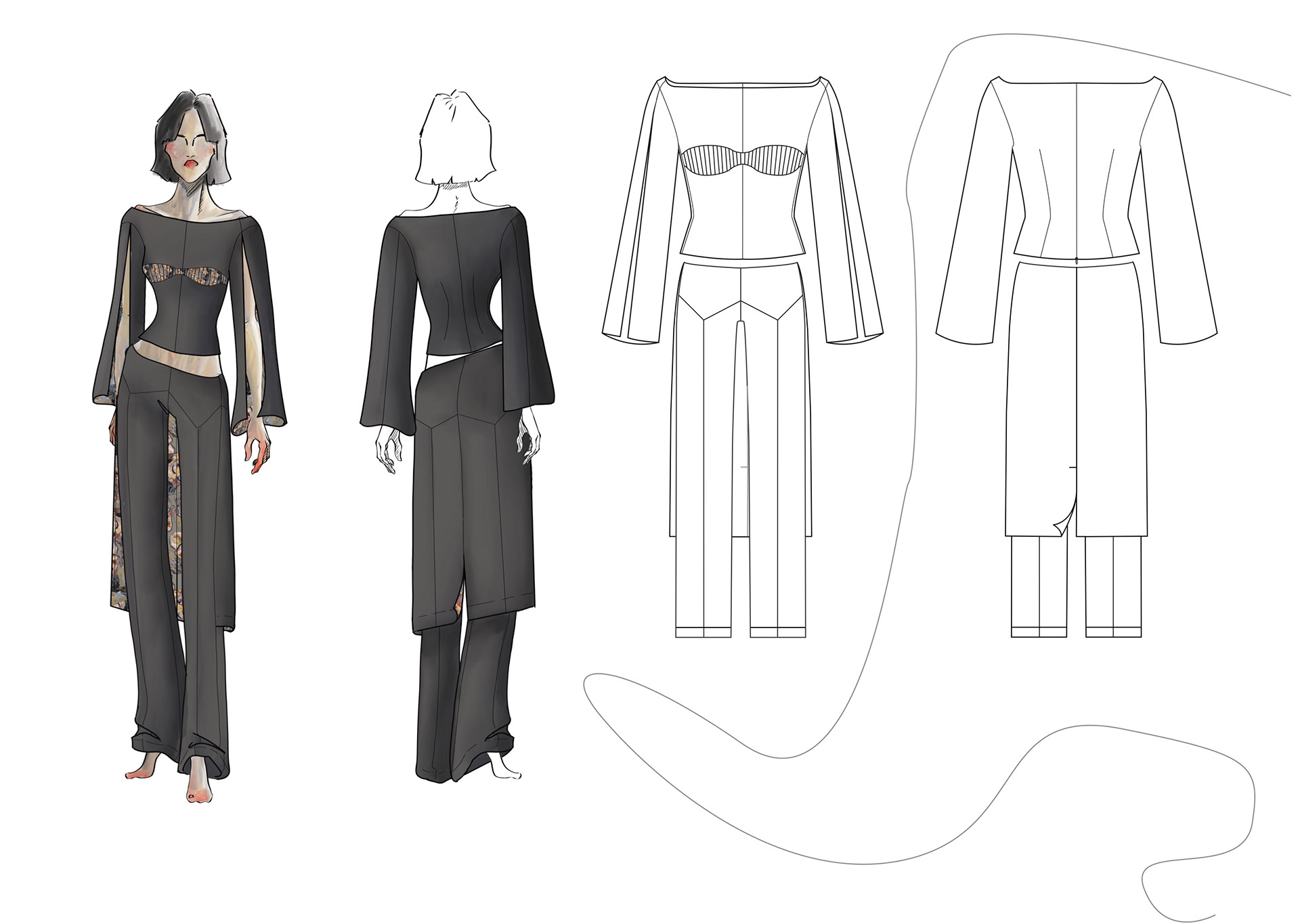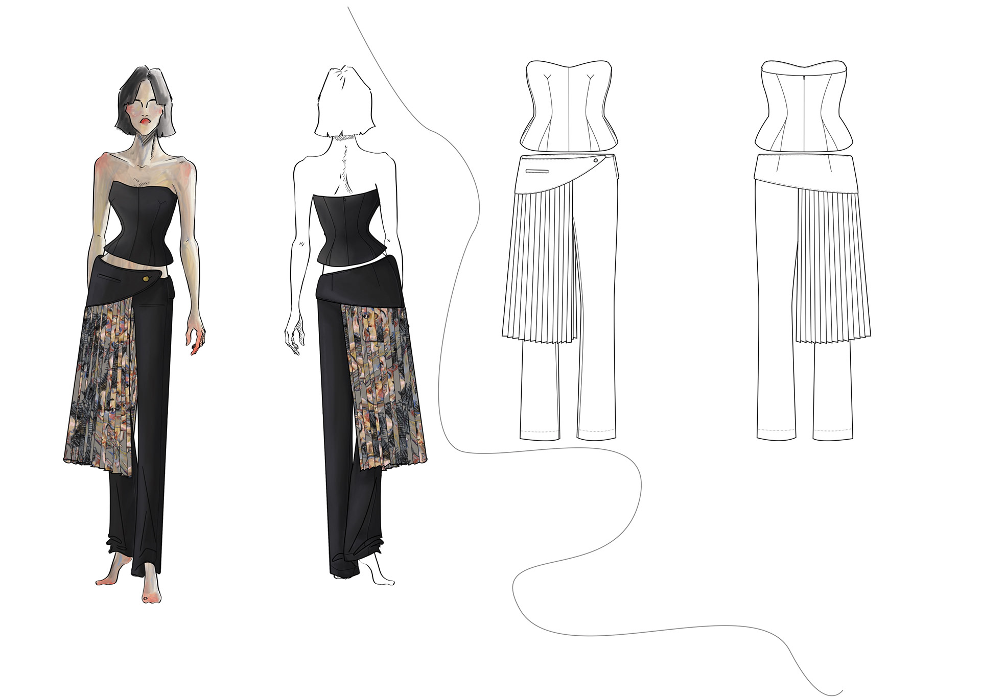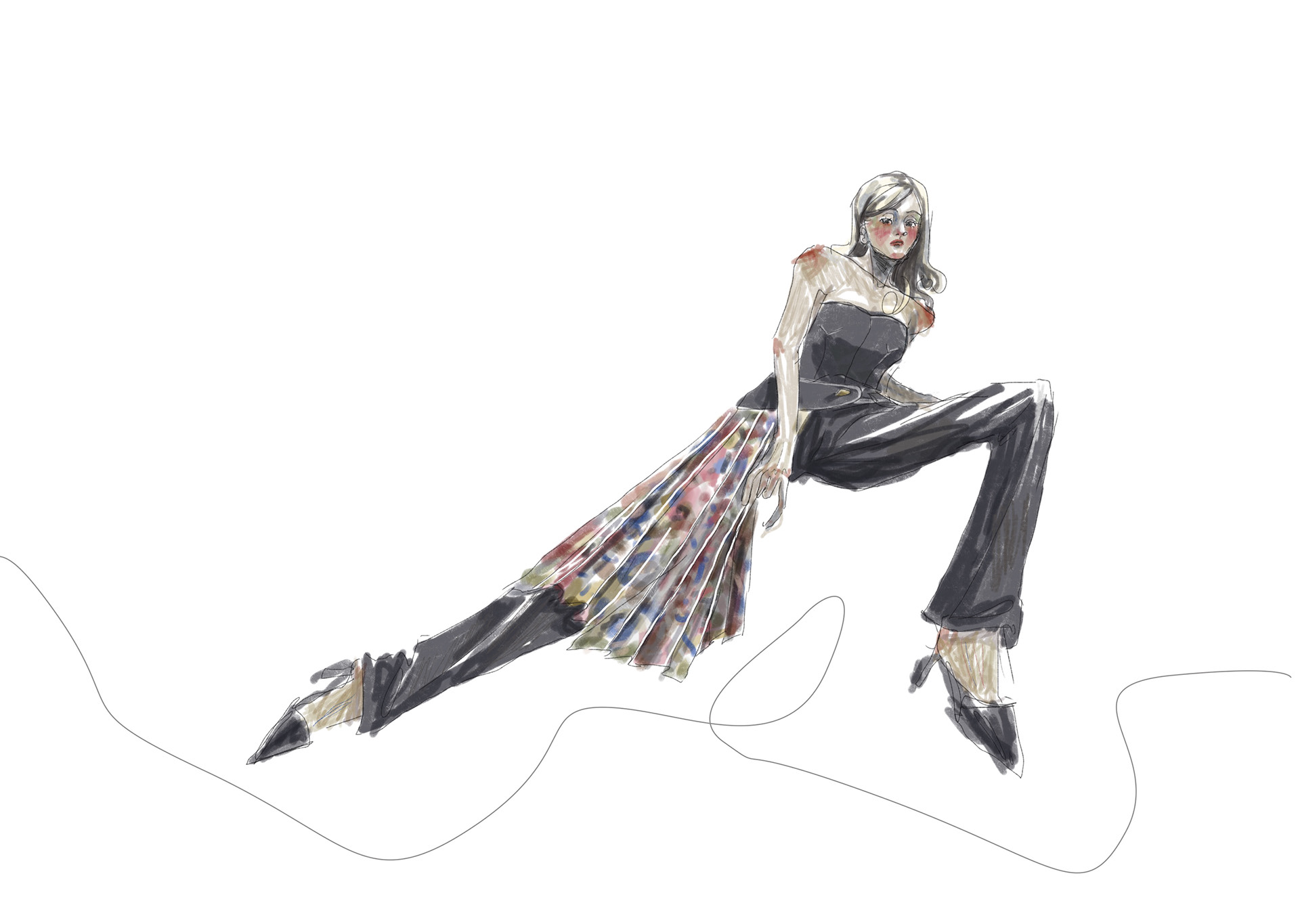 A Project based on a combination of The Works of Egon Schiele and the Silhouettes of Christian Diors „The New Look“ We produced New Silhouettes, Fashion Illustrations, Print and Accessoires Designs.