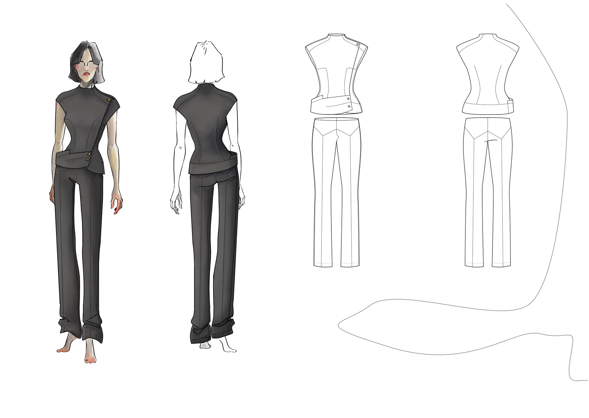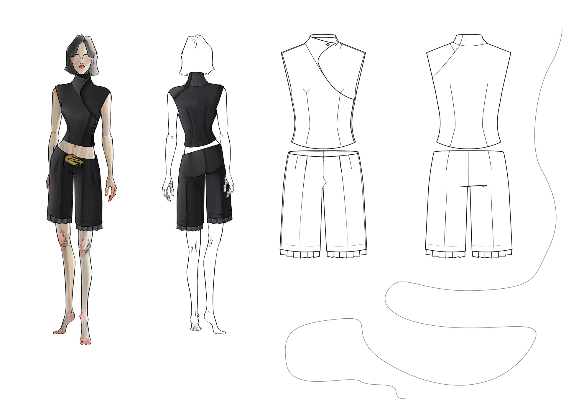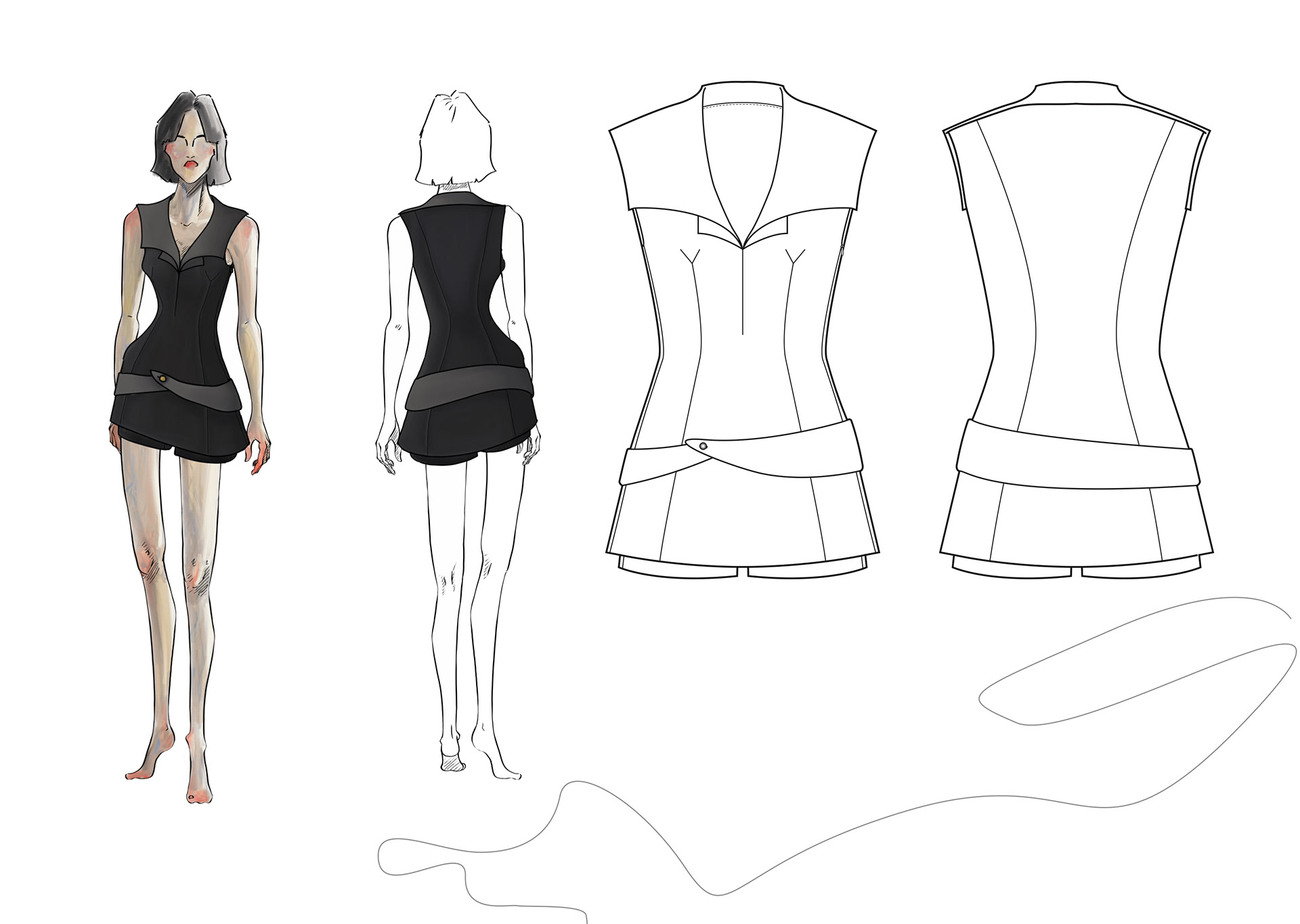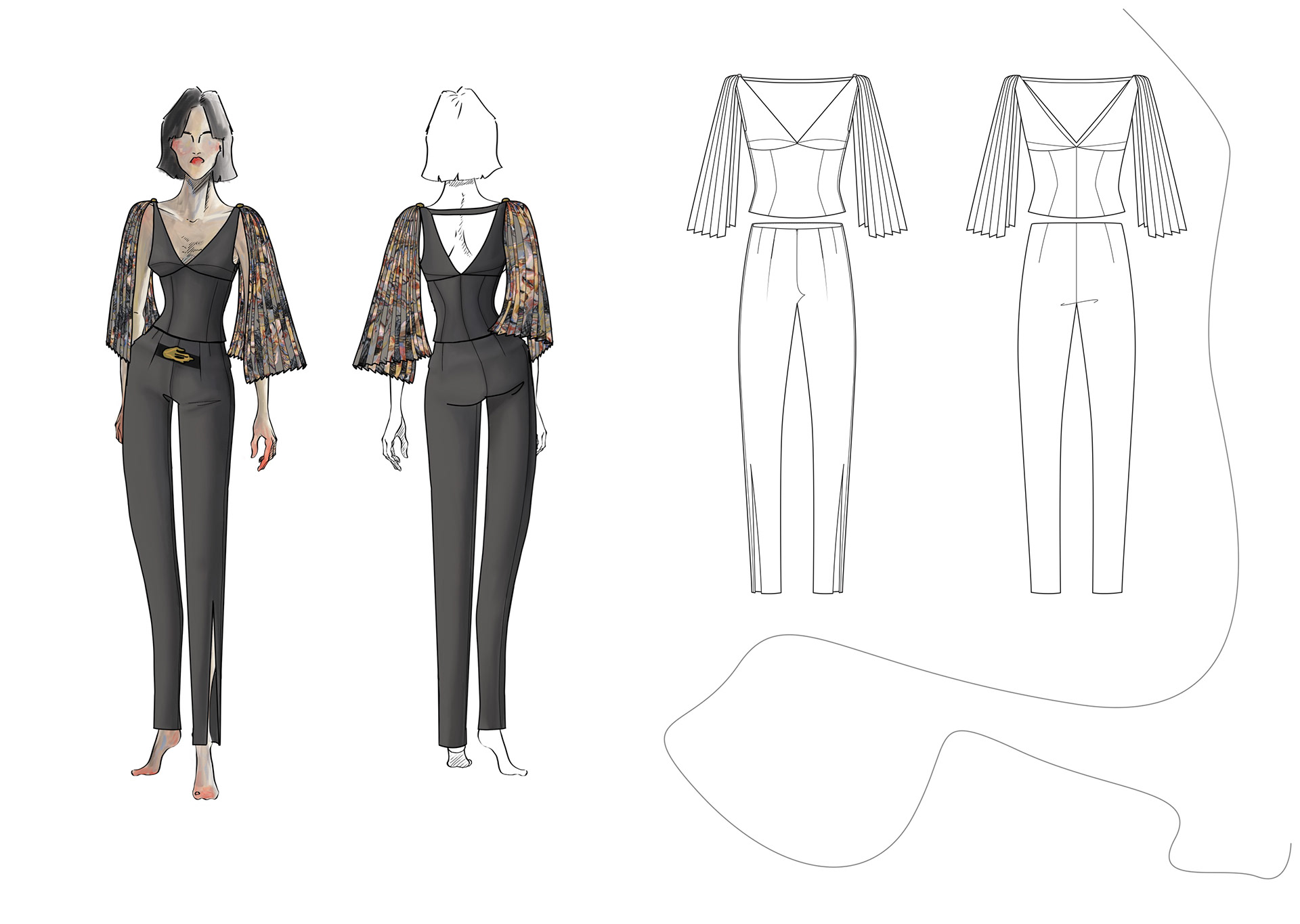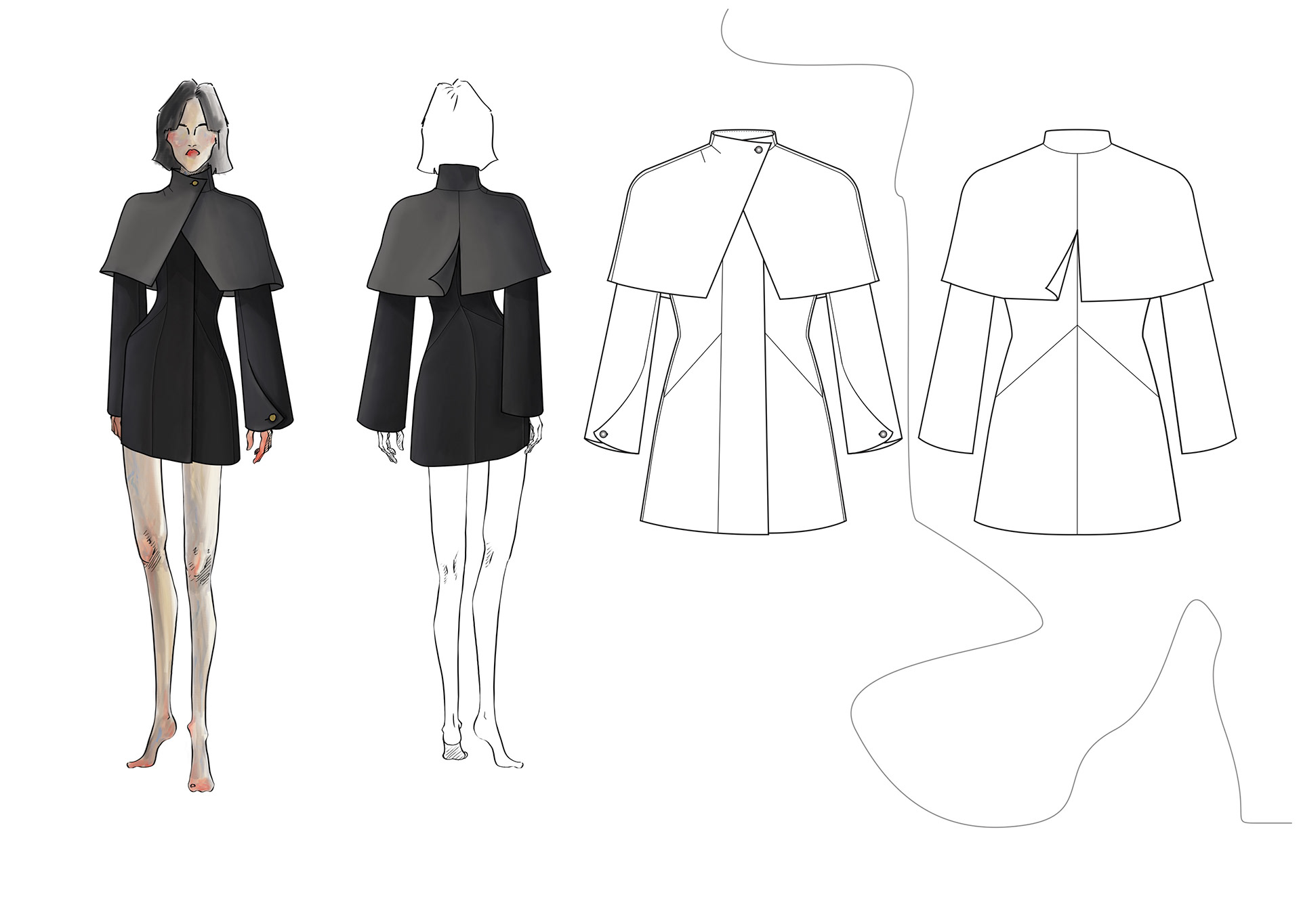 A Project based on a combination of The Works of Egon Schiele and the Silhouettes of Christian Diors „The New Look“ We produced New Silhouettes, Fashion Illustrations, Print and Accessoires Designs.